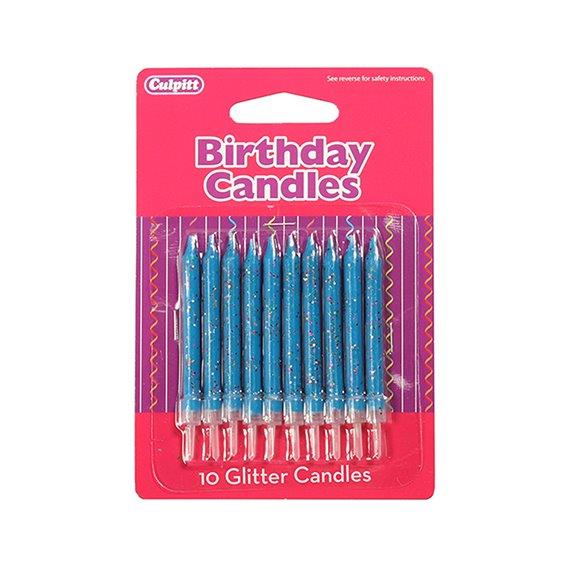 10 Glitter Candles with Holder – Blue